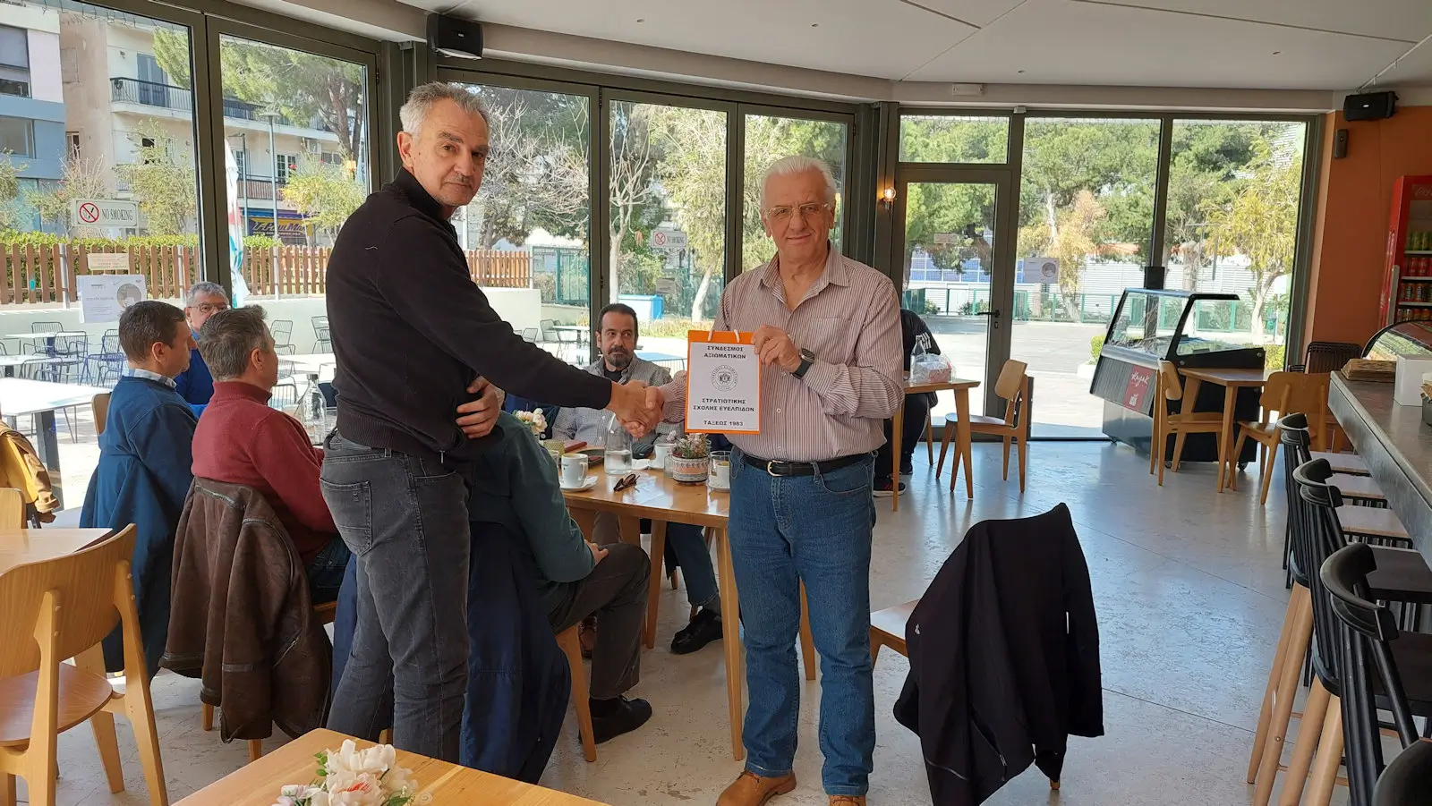 Η επιλογή αυτής της καφετέριας για συνάντηση συμμαθητών δεν ήταν τυχαία, καθόσον, με ομόφωνη απόφαση του Διοικητικού Συμβουλίου του Συνδέσμου μας, αποφασίσθηκε να προσφέρουμε στο ΚΕΕΠΕΑ μια δωροεπιταγή των 100 ευρώ από τα καταστήματα Public, ως μια μικρή συμβολή στην προσπάθεια του Κέντρου για την υποστήριξη των ατόμων με Αναπηρία.